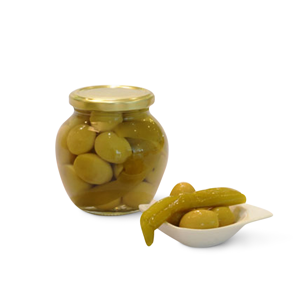 Olives vertes entières aux piments verts